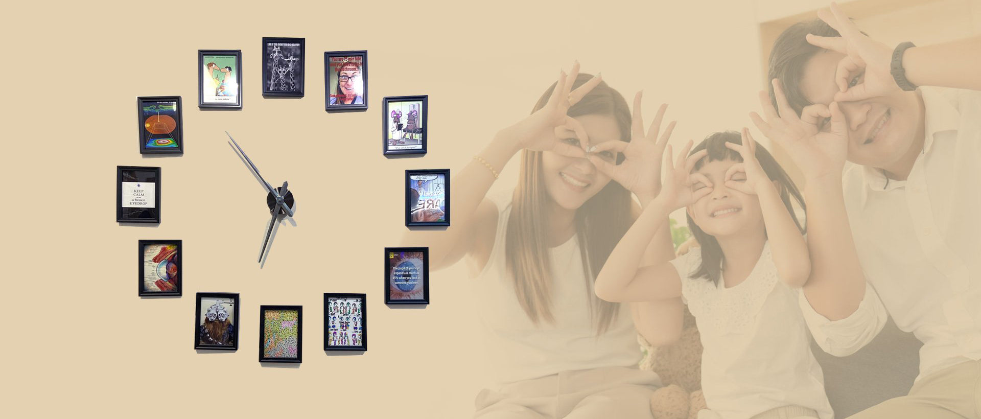 Our clinic's clock decoration is the perfect visual representation of a primary eye care exam, and you won't find it anywhere else. Its unique and informative design will give you a greater understanding of what to expect during your next eye care appointment. Don't hesitate to visit our clinic today and see it for yourself! This clock decor installed in our clinic describes a primary eye care exam in a nutshell: a complete analysis of your personal health history, a concise yet precise assessment of your eyes’ structure and functions, our optimal prescription to ensure the best visual outcome, and our advice to enhance your overall health and wellness.